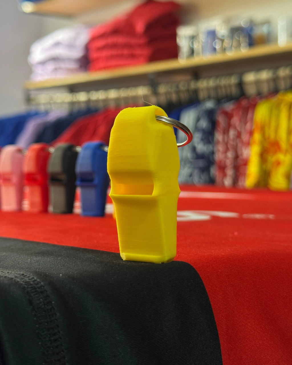 Este silbato está fabricado con tecnología de impresión 3D, lo que lo hace ligero, resistente y práctico para un uso diario. Su diseño ergonómico permite un agarre cómodo y un sonido fuerte y claro, ideal para entrenadores, profesores de educación física, guardavidas, árbitros o actividades al aire libre.