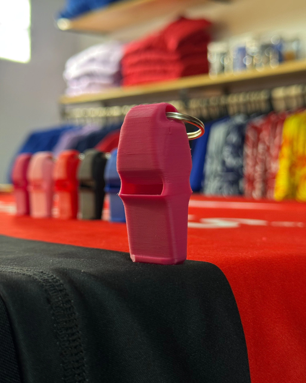 Este silbato está fabricado con tecnología de impresión 3D, lo que lo hace ligero, resistente y práctico para un uso diario. Su diseño ergonómico permite un agarre cómodo y un sonido fuerte y claro, ideal para entrenadores, profesores de educación física, guardavidas, árbitros o actividades al aire libre.